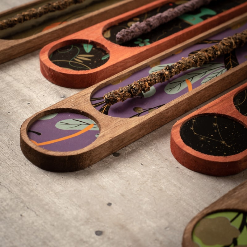 Un soporte para incienso es indispensable para disfrutar de tu ritual. Este hermoso porta incienso no solo es funcional, sino también versátil: perfecto para varillas, conitos, pirámides energéticas e incluso sahumos.